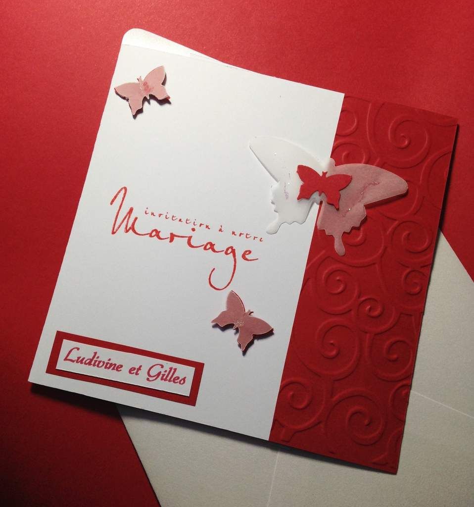 Faire-parts de Mariage thème Papillons et couleurs rouge & blanc...